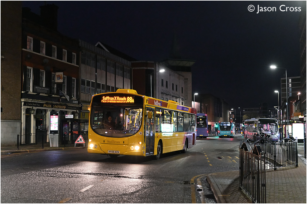 First Leicester 69383 on Charles Street with an 88A for Saffron Cross Roads. Date: 16 January 2021 Manipulation Notes: None