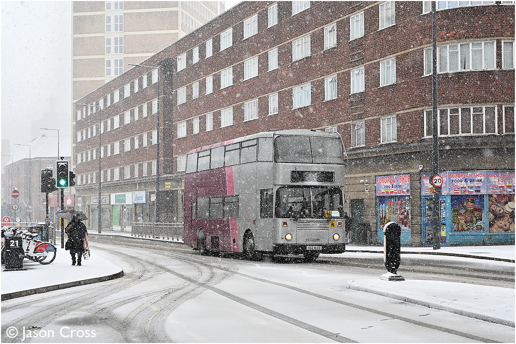 Leicester Buses in the Snow - AGZ 1670 on Charles Street while working a private staff special. Date: 24 January 2021 Manipulation Notes: None
