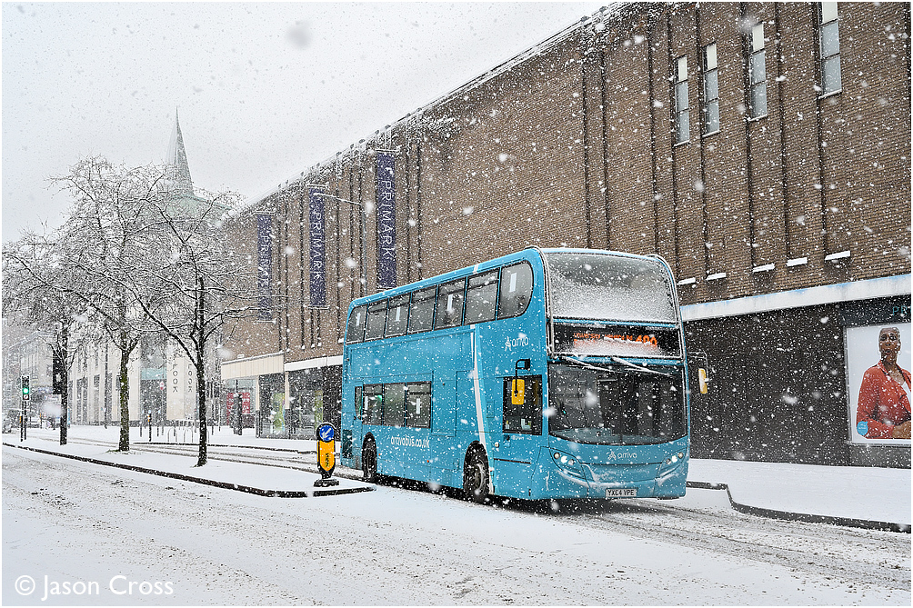 Leicester Buses in the Snow - Arriva 4424 on Charles Street with a 48A Wigston Magna to Haymarket Bus Station service. Date: 24 January 2021 Manipulation Notes: None