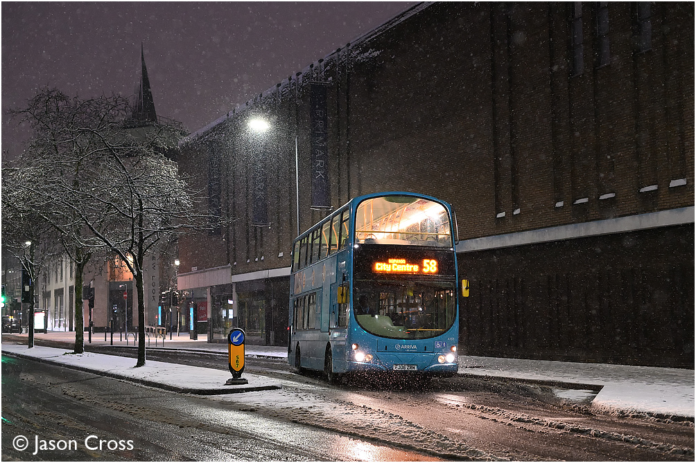 Leicester Buses in the Snow - Arriva 4768 on Charles Street with a 58 from Hamilton. Date: 24 January 2021 Manipulation Notes: None