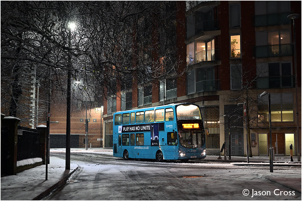 Leicester Buses in the Snow - Arriva 4774 on East Bond Street with a Leicester City Centre to Hinckley 158 service. Date: 24 January 2021 Manipulation Notes: None