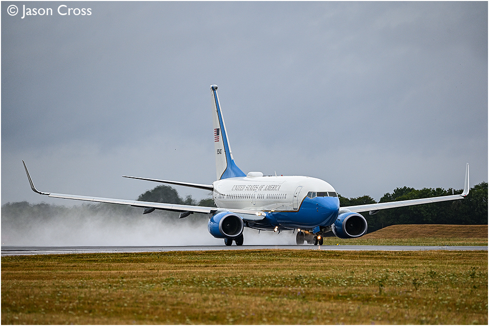 USAF Boeing C-40 Clipper 09-0540 takes off from a wet RAF Fairford. Date: 20 July 2025 Manipulation Notes: None
