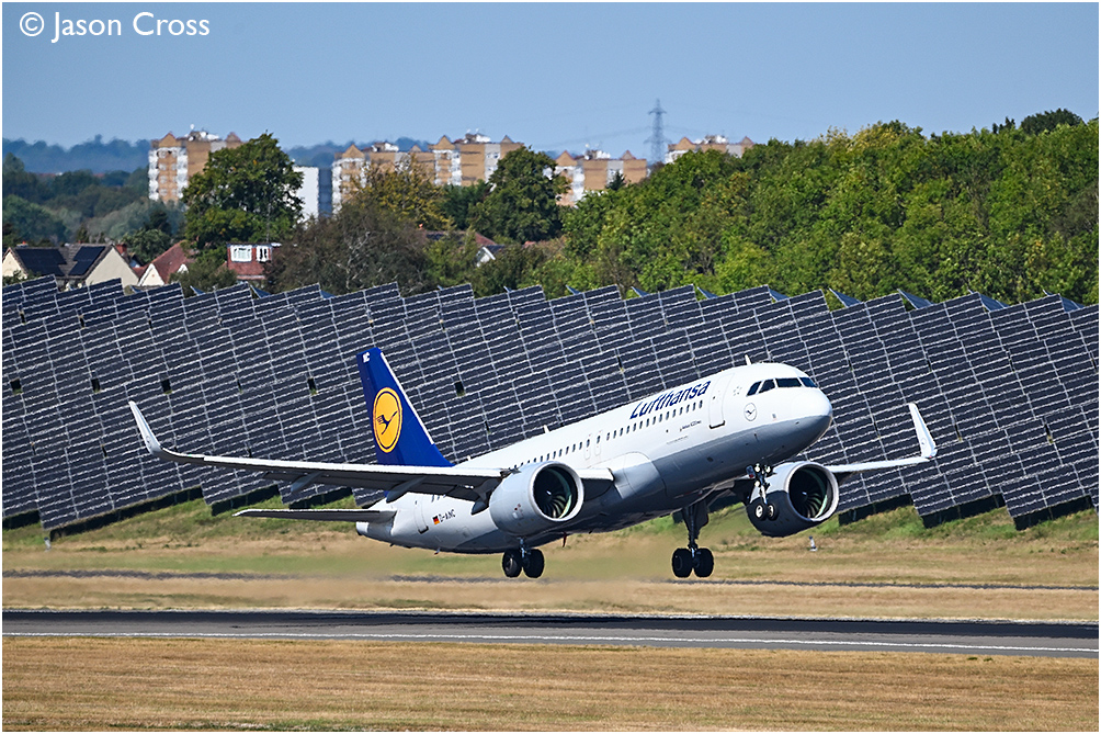 Lufthansa Airbus A320 D-AINC departing from Birmingham for Frankfurt. Date: 25 August 2025 Manipulation Notes: None