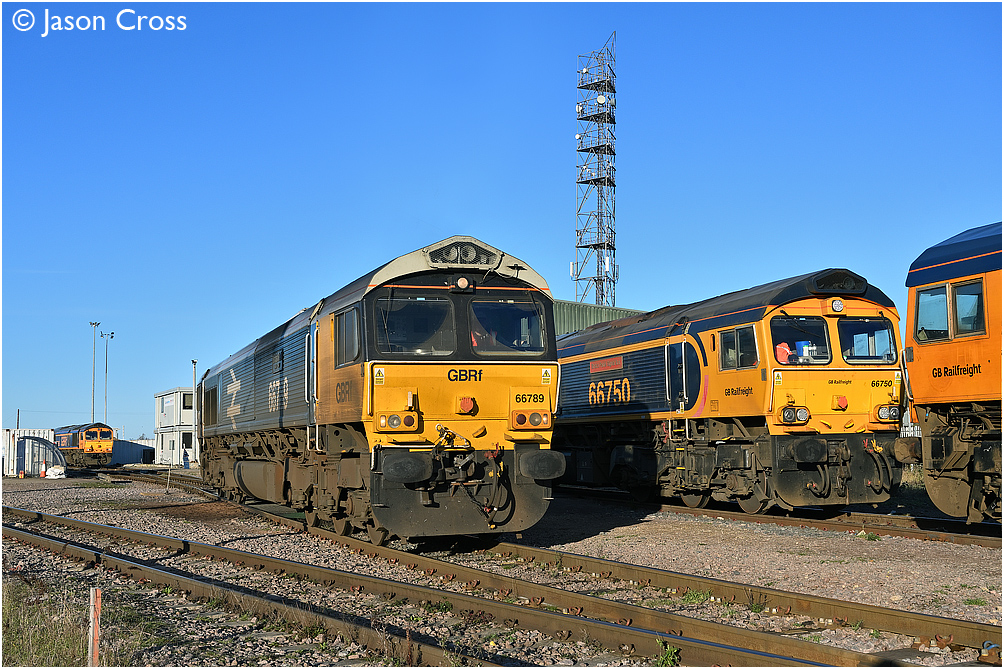 66789 moves off the fuelling point in Peterborough Yard. (Photo taken with permission and from a position of safety). Date: 4 January 2022 Manipulation Notes: None