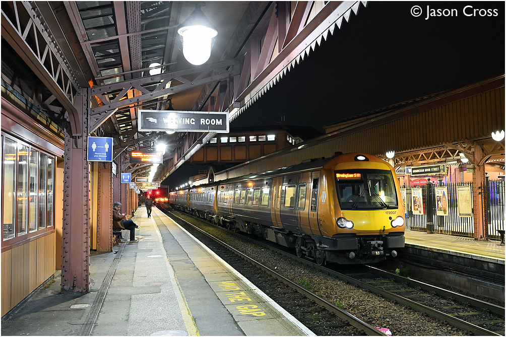 172007 and 172006 call at Birmingham Moor Street with the 2B91 2046 Dorridge to Birmingham Snow Hill. Date: 19 February 2022 Manipulation Notes: None