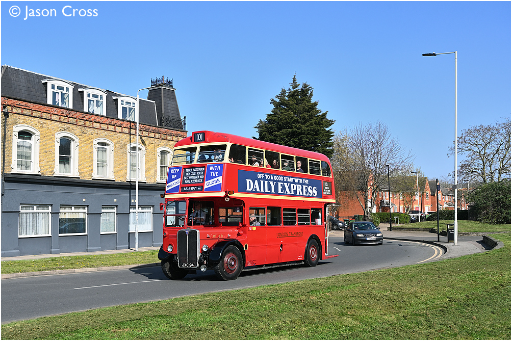 RT1431 arrives at Cyprus Place (the former Royal Albert Dock terminus). Route 101 vintage bus running day (organised by the London Bus Museum). Date: 26 March 2022 Manipulation Notes: None