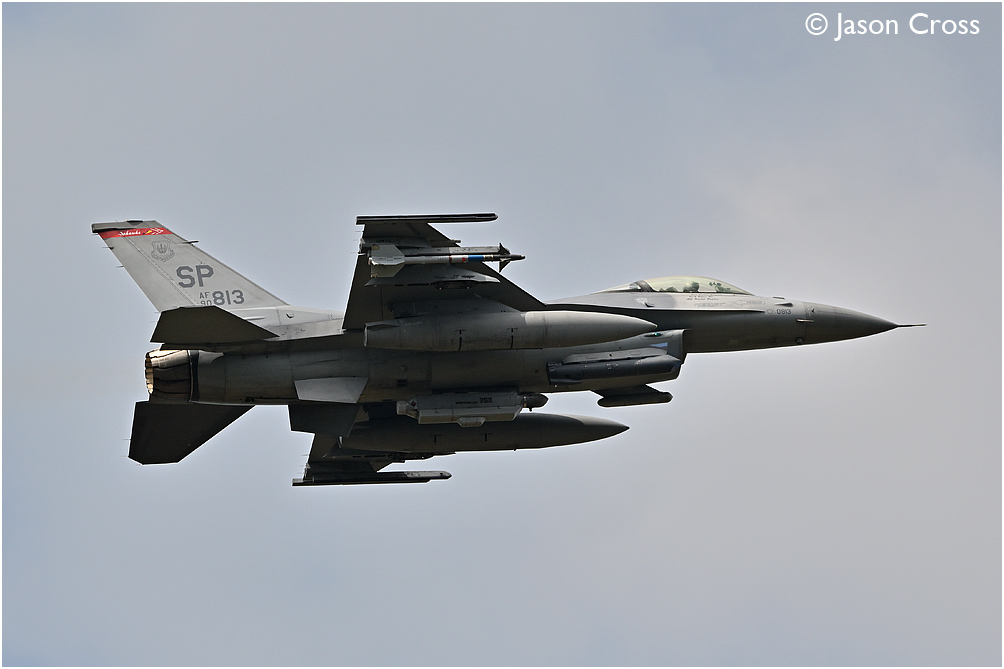 Visiting F16C 90-0813 takes off from RAF Lakenheath's runway 06. Date: 23 June 2022 Manipulation Notes: None