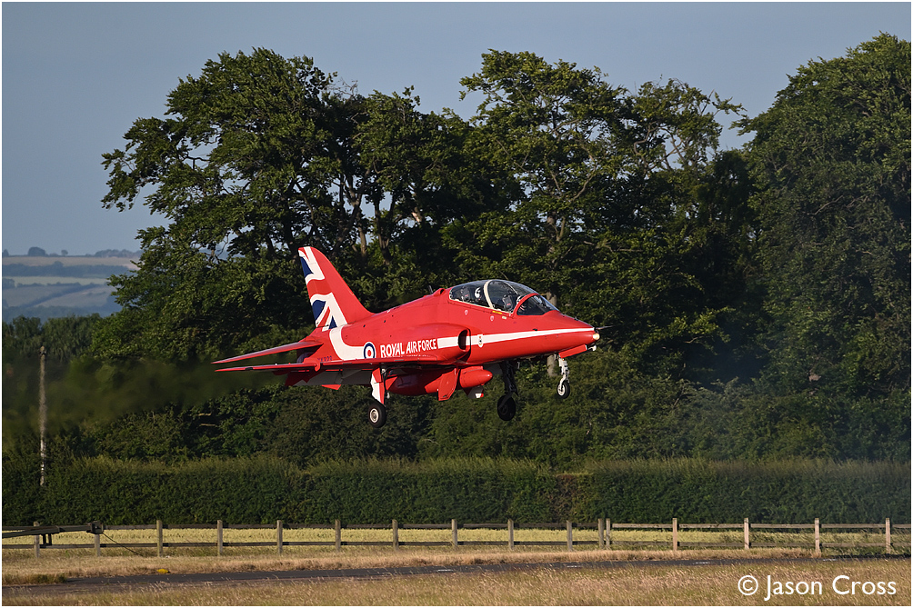 RAF Red Arrow Hawk XX323 on final approach to RAF Scampton at the end of a transit flight from Bournemouth Airport.