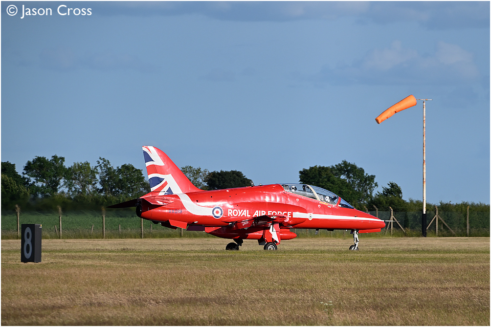 RAF Red Arrow Hawk XX219 shortly after touching down at RAF Scampton at the end of a transit flight from Bournemouth Airport. Date: 26 June 2022 Manipulation Notes: None