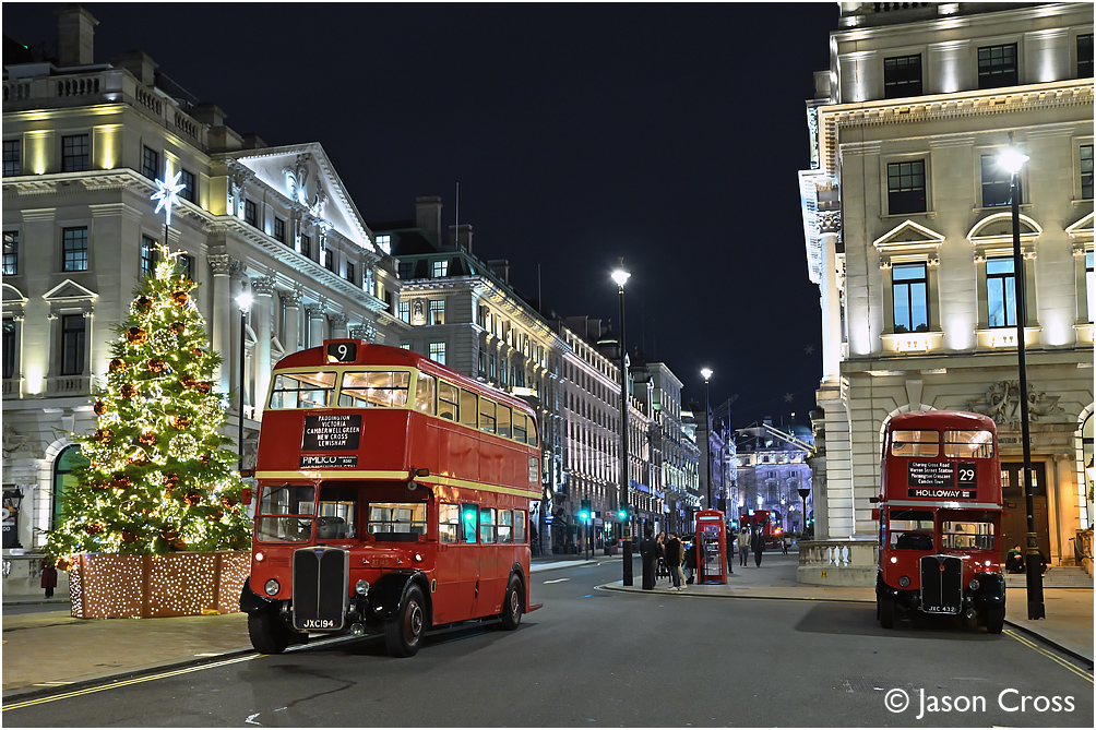 RT1431 and RT647 in Waterloo Place, Westminster. Timeline Events photo shoot. Date: 20 November 2022 Manipulation Notes: None