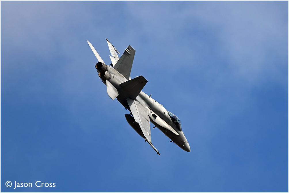 Finland Air Force F18 Hornet HN438 in the circuit over RAF Waddington. Exercise Cobra Warrior. Date: 10 March 2023 Manipulation Notes: None