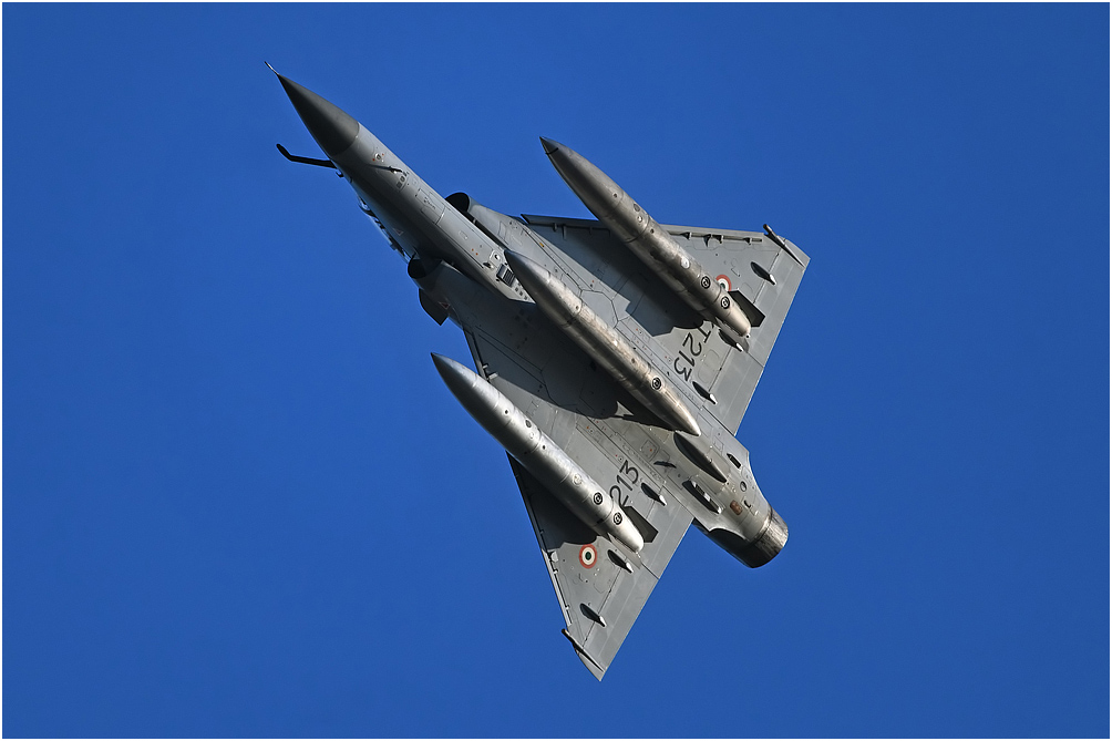 Indian Air Force Dassault Mirage 2000 KT213 in the circuit over RAF Waddington. Exercise Cobra Warrior. Date: 10 March 2023 Manipulation Notes: None