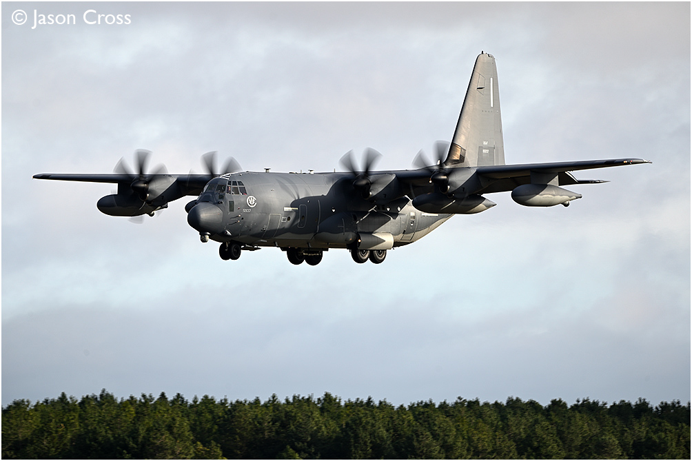 USAF Lockheed MC-130J 'Hercules' 20-5937 on final approach to runway 28 at RAF Mildenhall - callsign STRIX67. Date: 2 February 2024 Manipulation Notes: None