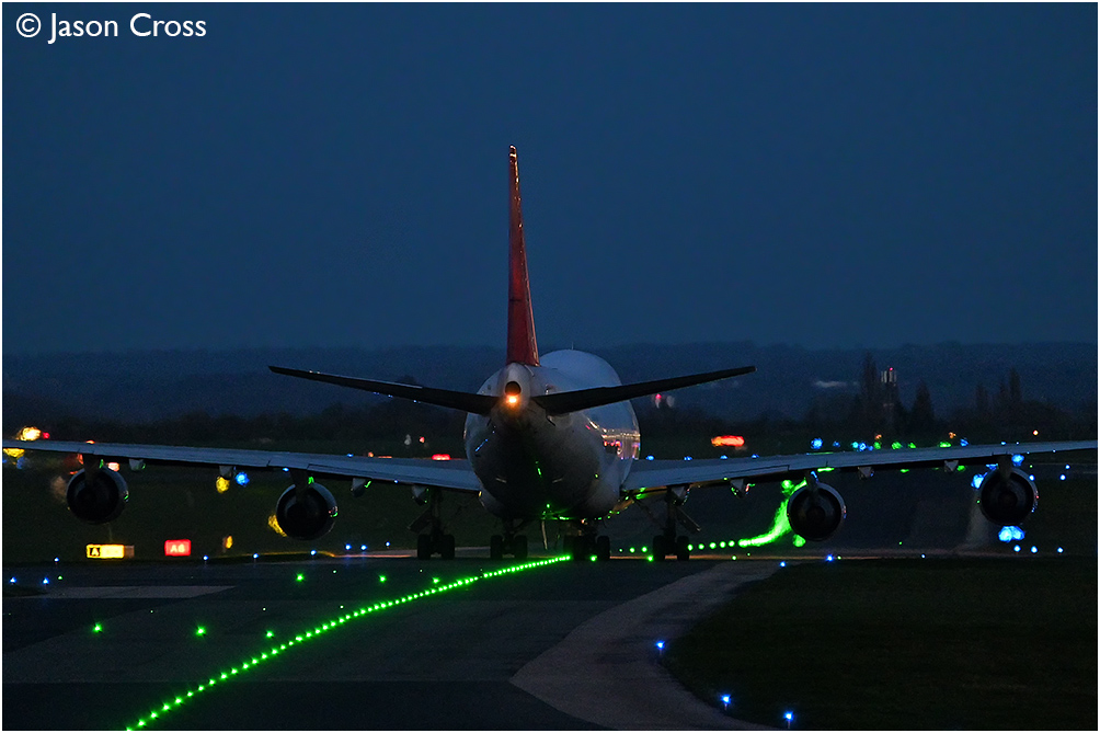 One Air Boeing 747 G-UNET taxies towards Cargo East at East Midlands Airport after arriving with a cargo flight from Muscat. Date: 1 April 2024 Manipulation Notes: None