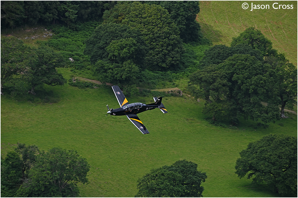 Royal Air Force Beech Texan II T1 ZM324 on a training flight from RAF Valley. Mach Loop, Wales (taken from Bluebell). Date: 17 July 2024 Manipulation Notes: None