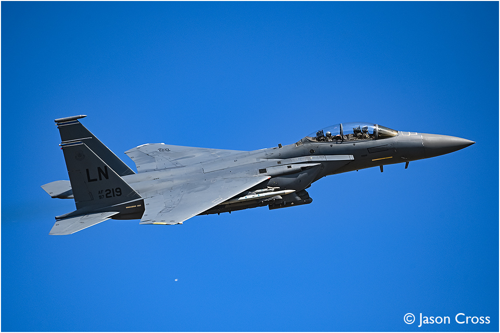 USAF Boeing F15E 'Strike Eagle' 97-0219. Runway 05 departure, RAF Lakenheath. Date: 30 June 2025 Manipulation Notes: None