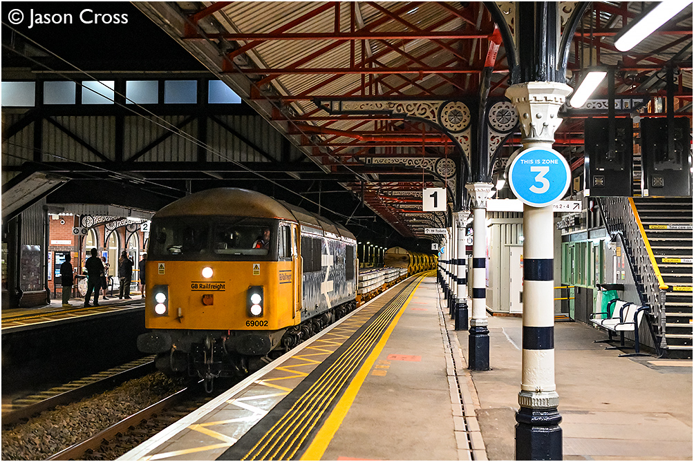 69002 passes through Grantham with the 6L84 2141 Doncaster Up Decoy to Whitemoor Yard. Date: 23 July 2025 Manipulation Notes: None