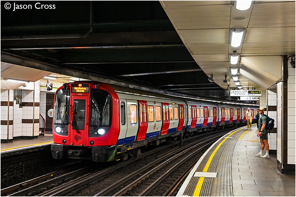 21535 arrives at Tower Hill with a terminating District Line service from Richmond. It will form a westbound service for Ealing Broadway. Date: 30 July 2025 Manipulation Notes: None