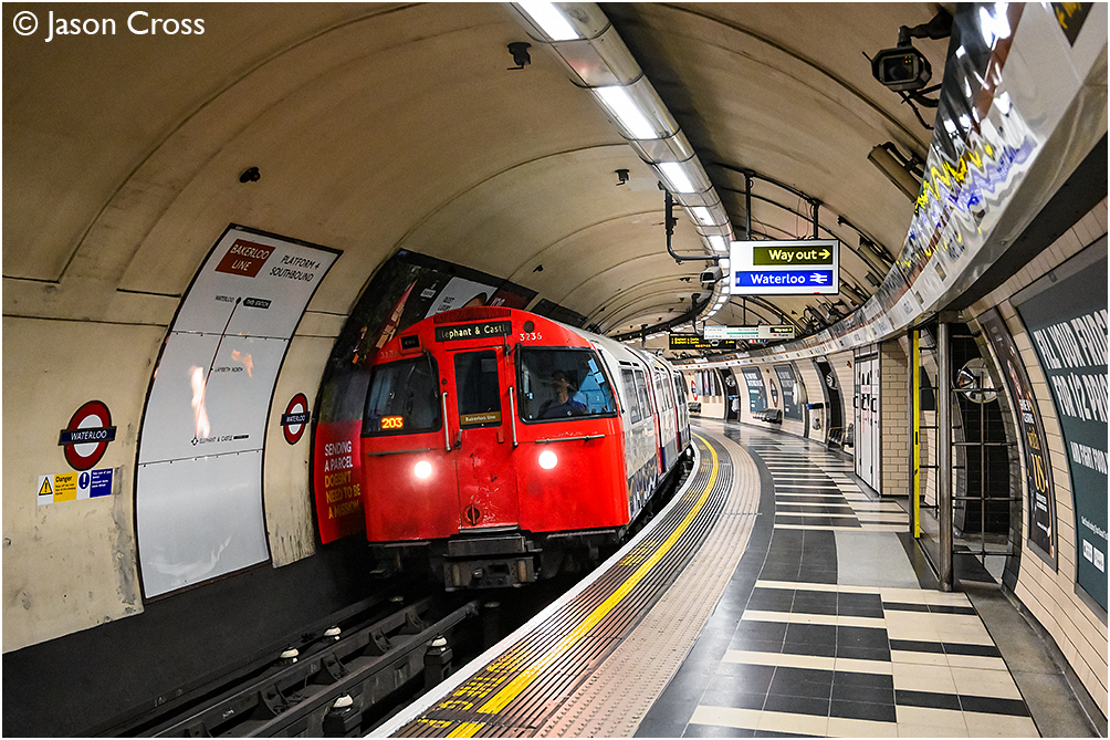 1972 Tube Stock DM 3236 leads a Harrow & Wealdstone to Elephant & Castle Bakerloo Line service into Waterloo. Date: 30 July 2025 Manipulation Notes: None