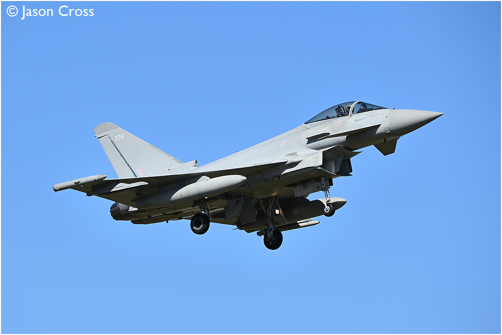 Typhoon FGR4 ZK339 on final approach to runway 07 at RAF Coningsby. Date: 23 April 2021 Manipulation Notes: None