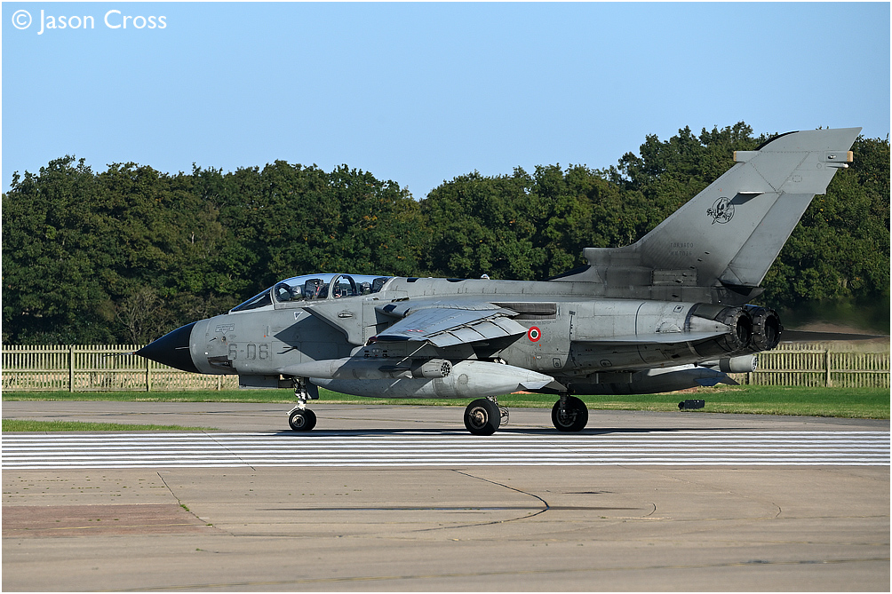 Aeronautica Militare (Italian Air Force) Panavia Tornado IDS MLU, MM7036 (6-06) taxies to runway 25 at RAF Coningsby. Date: October 2021 Manipulation Notes: None