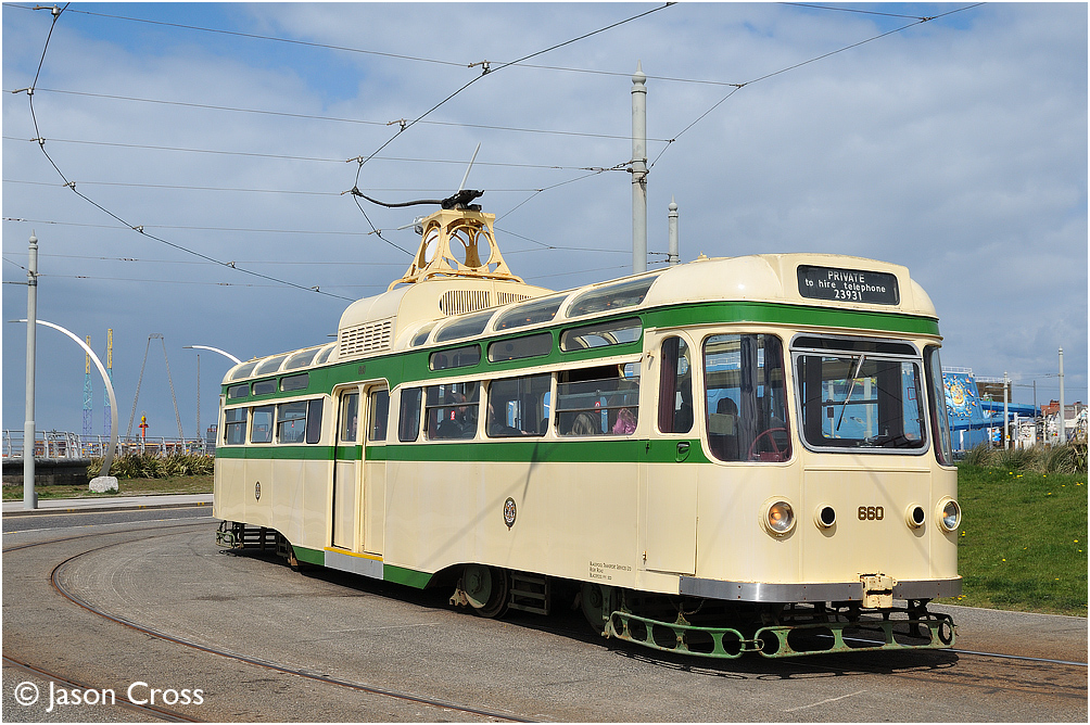 Coronation 660 at Pleasure Beach while working a Fylde Tramway Society tour. Date: 3 May 2010 Manipulation Notes: None