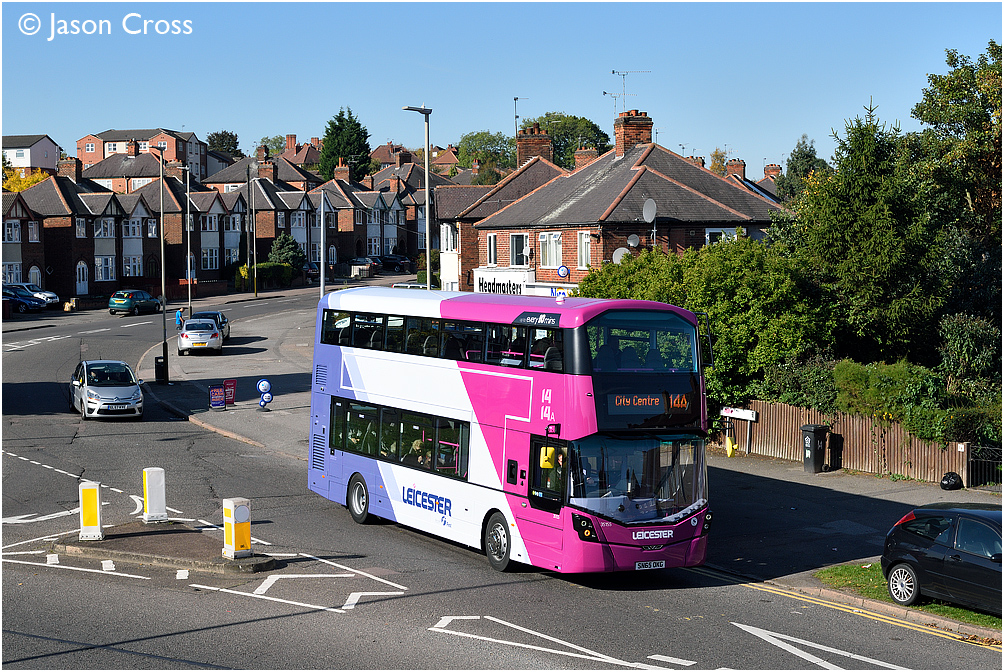 First Leicester 35155, Petworth Drive (14A Beaumont Centre to City Centre). Date: 9 October 2015 Manipulation Notes: None Camera mounted on a tall pole and remotely fired