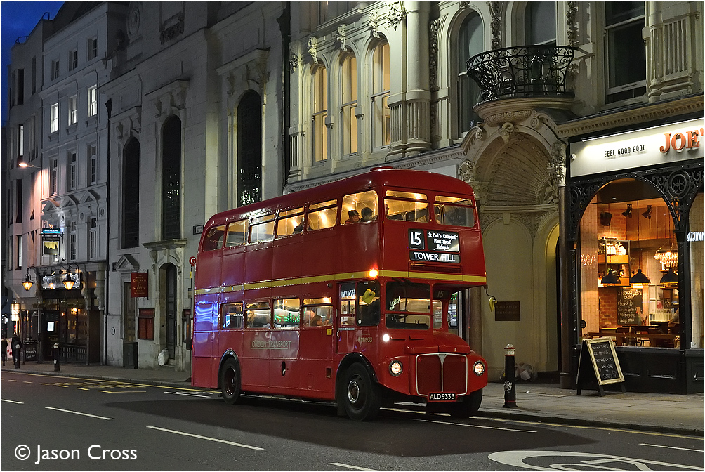 RM1933 pauses on Ludgate Hill with a 15H Trafalgar Square to Tower Hill service. Date: 14 January 2018 Manipulation Notes: None
