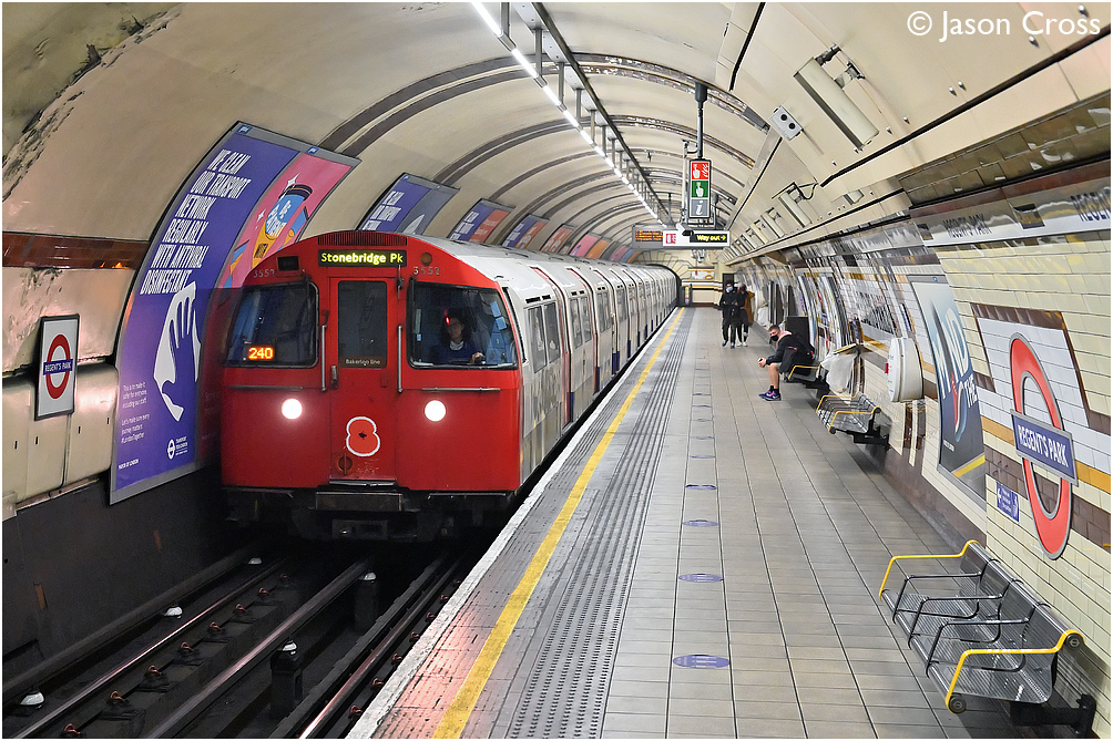 3552 arrives into Regent's Park with an Elephant & Castle to Stonebridge Park Bakerloo Line service. Date: 1 November 2020 Manipulation Notes: None