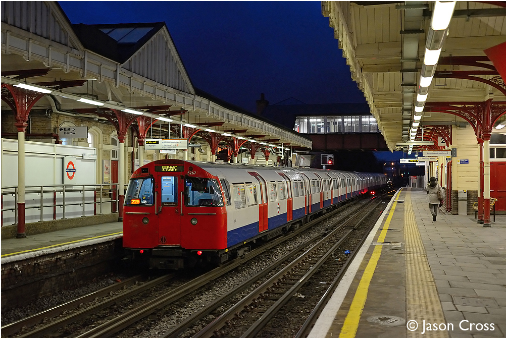 After terminating at Harrow & Wealdstone, a Bakerloo Line train of 1972 Stock draws forward into the reversing siding. Date: 23 December 2012 Manipulation Notes: None