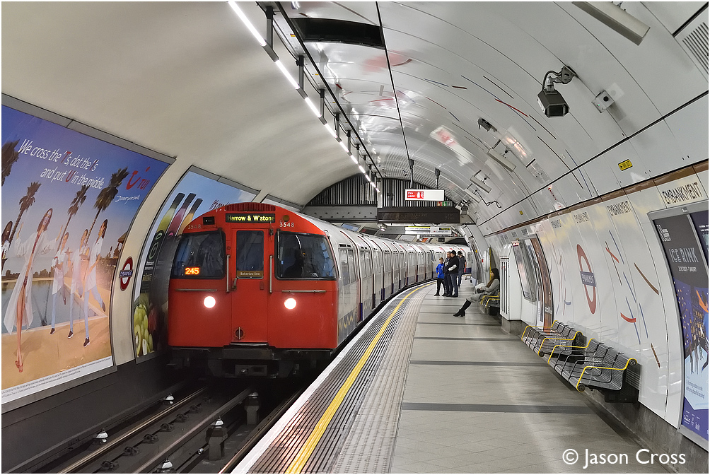 3548 leads an Elephant & Castle to Harrow & Wealdstone Bakerloo Line service into Embankment. Date: 4 November 2017 Manipulation Notes: None