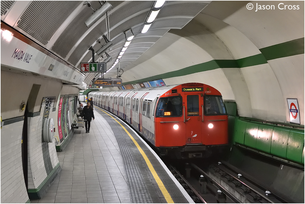 An Elephant & Castle to Queen's Park Bakerloo Line arrives into Maida Vale with 3553 leading. Date: 31 March 2018 Manipulation Notes: None