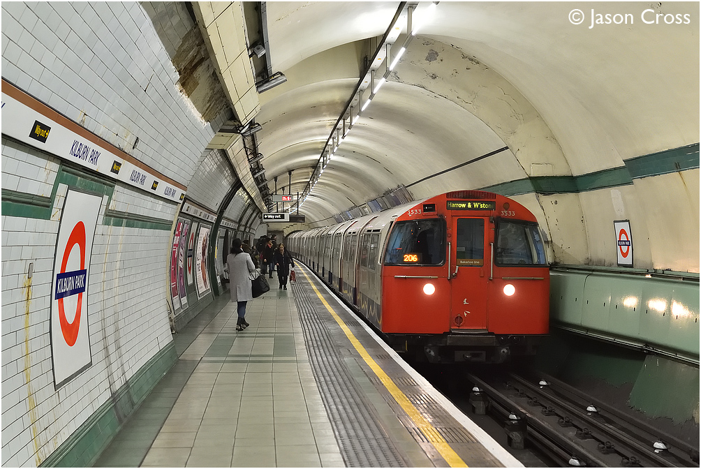 3533 leads an Elephant & Castle to Harrow & Wealdstone Bakerloo Line service into Kilburn Park. Date: 6 February 2019 Manipulation Notes: None