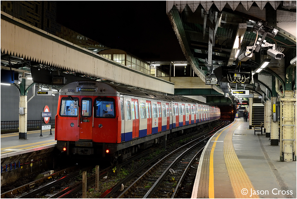 A train of C Stock stands at Edgware Road prior to departing with a service for Wimbledon. Date: 4 January 2014 Manipulation Notes: None