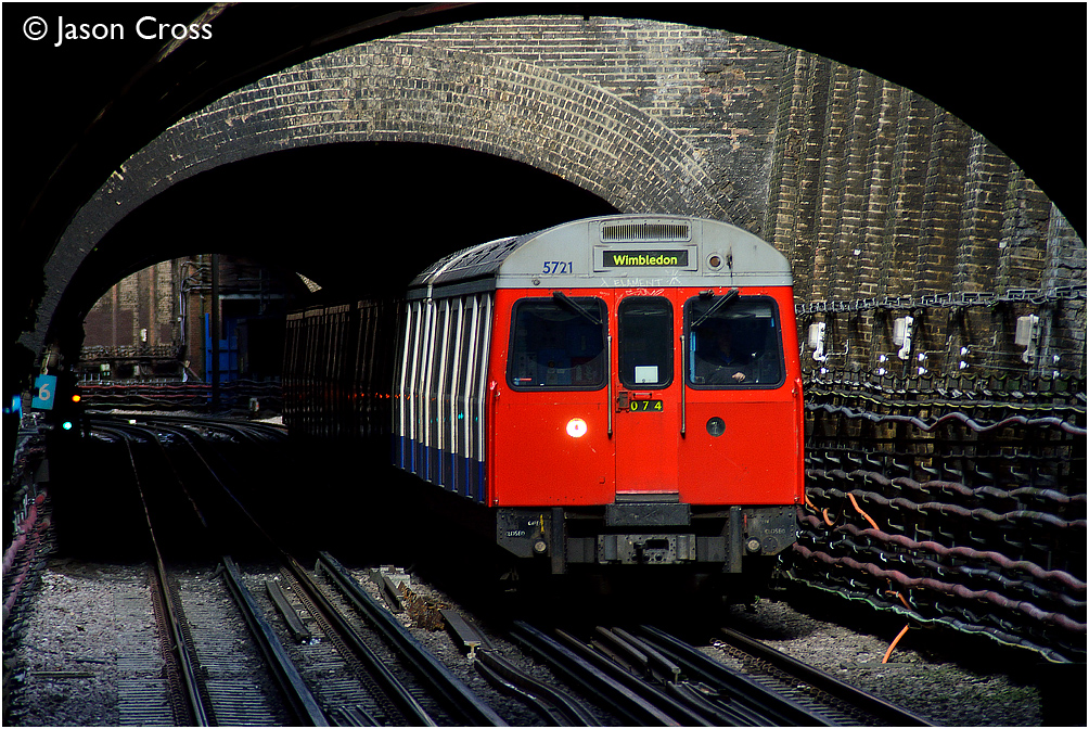 C77 unit 5721 leads an Edgware Road to Wimbledon service on the approach to Paddington. Date: 26 April 2014 Manipulation Notes: None