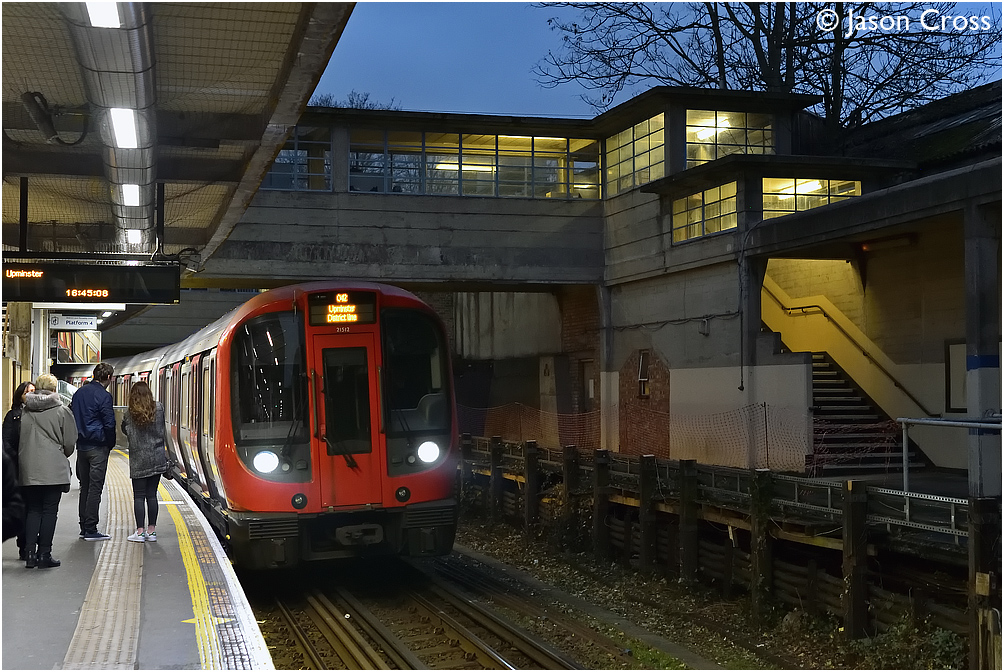 The removal of some advertising hoardings has revealed the former platform 5 at Acton Town, from where the South Acton shuttle used to operate. An eastbound District Line service arrives. Date: 19 January 2019 Manipulation Notes: None