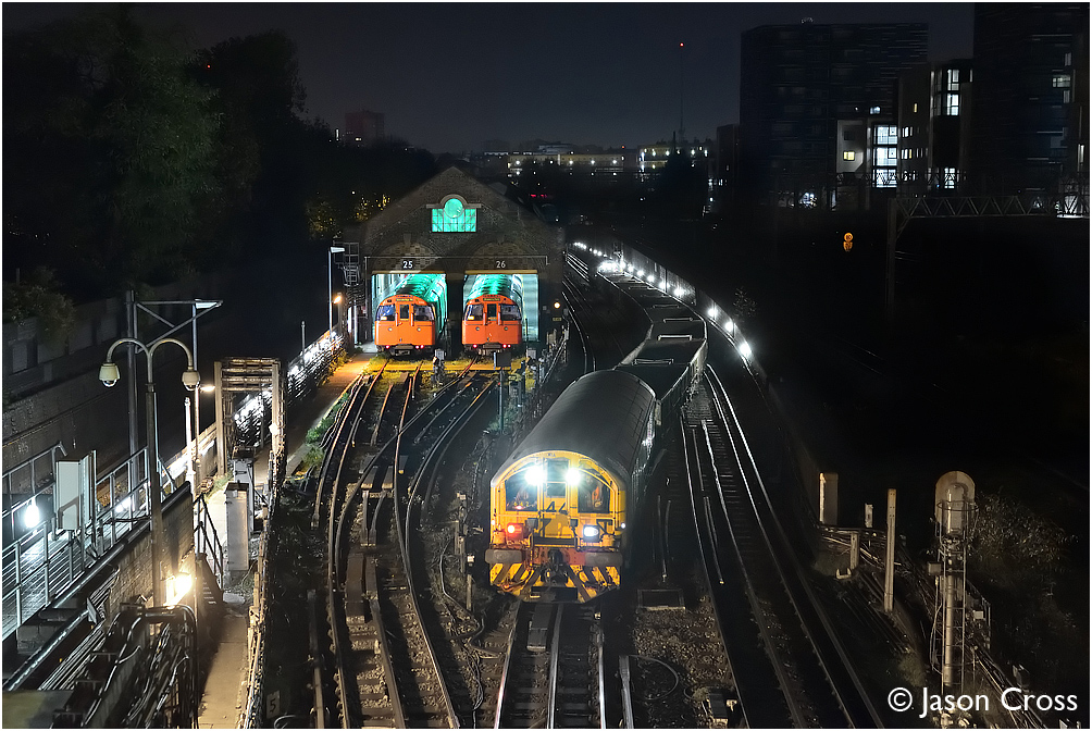 of 1972 Tube Stock (3532 and 3564) stand idle in Queen's Park South Carriage