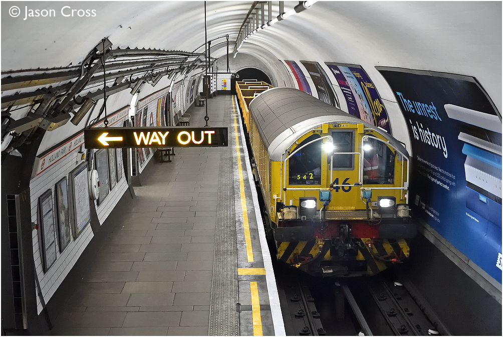 L46 rumbles through Holland Park with train 542, an 0015 Ruislip Depot to Snaresbrook engineering train. Date: 6 April 2019 Manipulation Notes: None