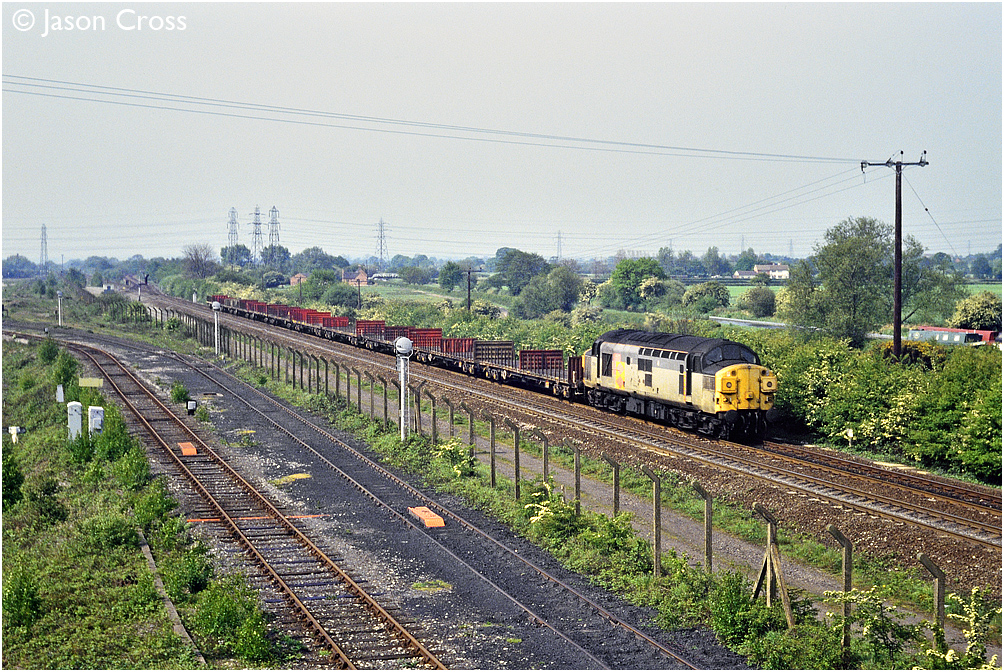 37101 passes North Staffs Junction with the Cardiff Pengam to Lynemouth aluminium empties. Date: 11 May 1993