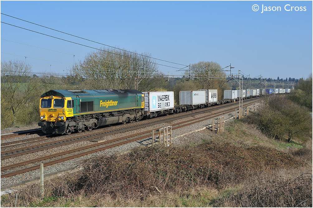 66572 passes Chelmscote with 4M87 0920 Felixstowe to Crewe Basford Hall. Date: 19 March 2011 Manipulation Notes: None