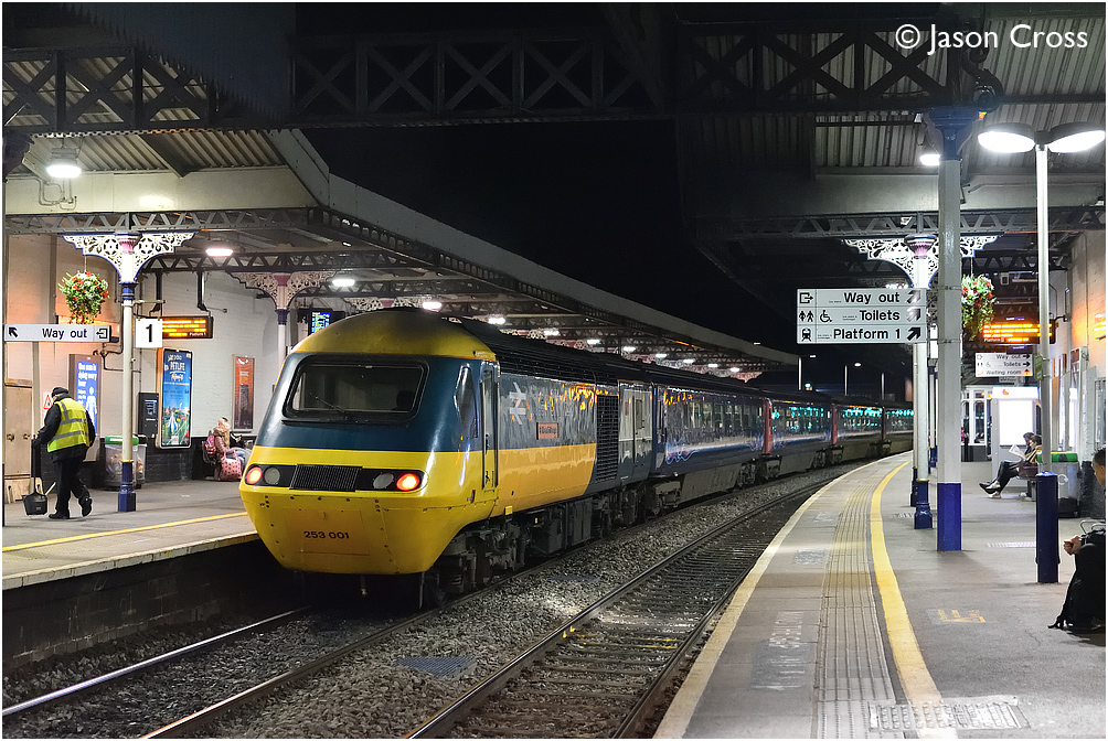 43002 departs from Cheltenham Spa on the rear of the 1L91 1900 Cheltenham Spa to London Paddington. Date: 17 February 2018 Manipulation Notes: None