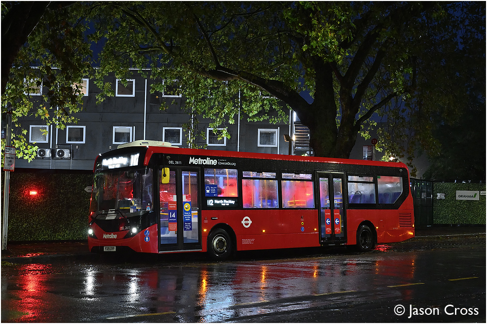 DEL2611 outside Ealing Broadway station in the pouring rain. Date: 3 October 2020 Manipulation Notes: None