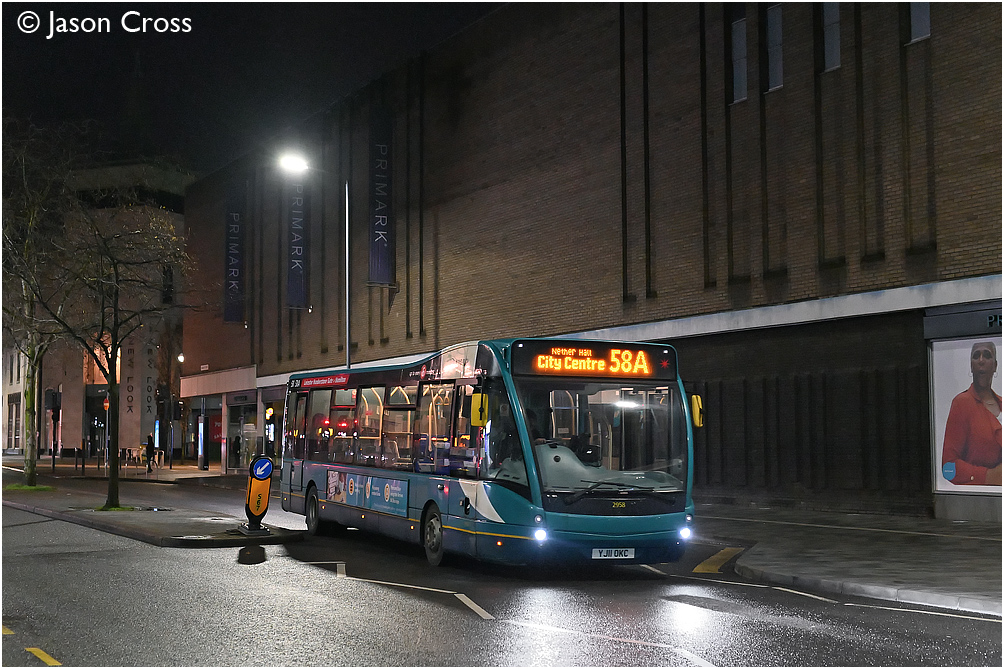 Arriva 2958 on Charles Street in Leicester with a 58A service from Nether Hall. Date: 16 January 2021 Manipulation Notes: None