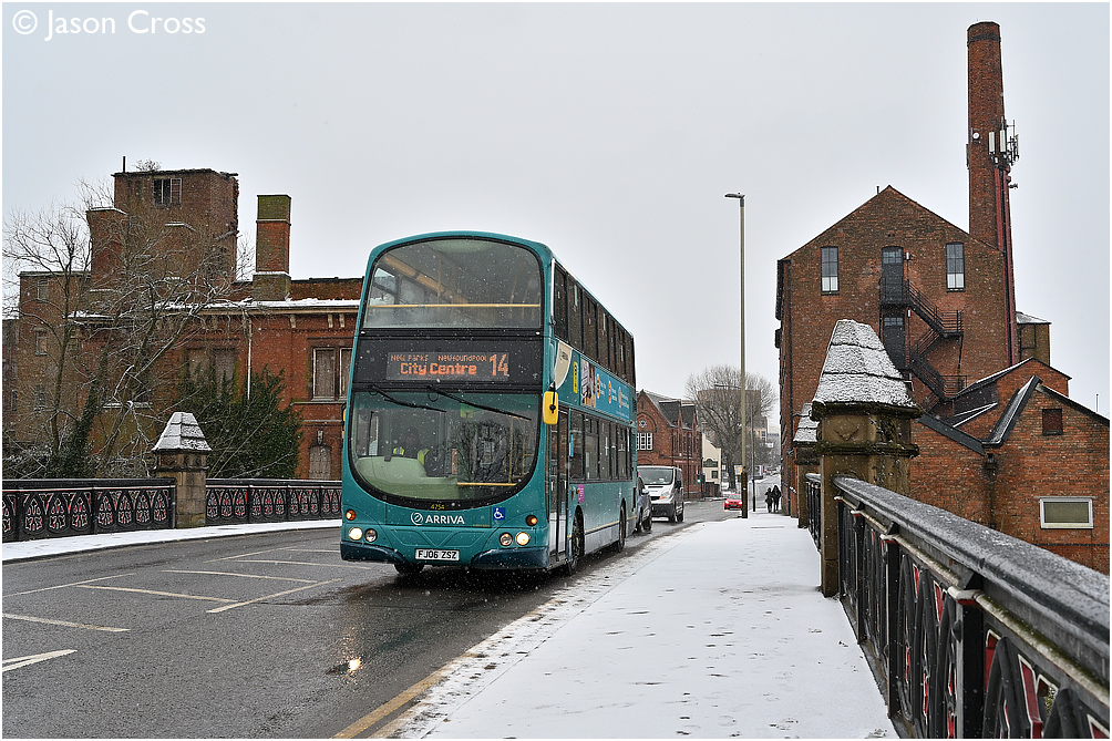 Leicester Buses in the Snow - Arriva's 4754 at Frog Island with a 14 to Tatlow Road (despite what it says on the front). Date: 24 January 2021 Manipulation Notes: None